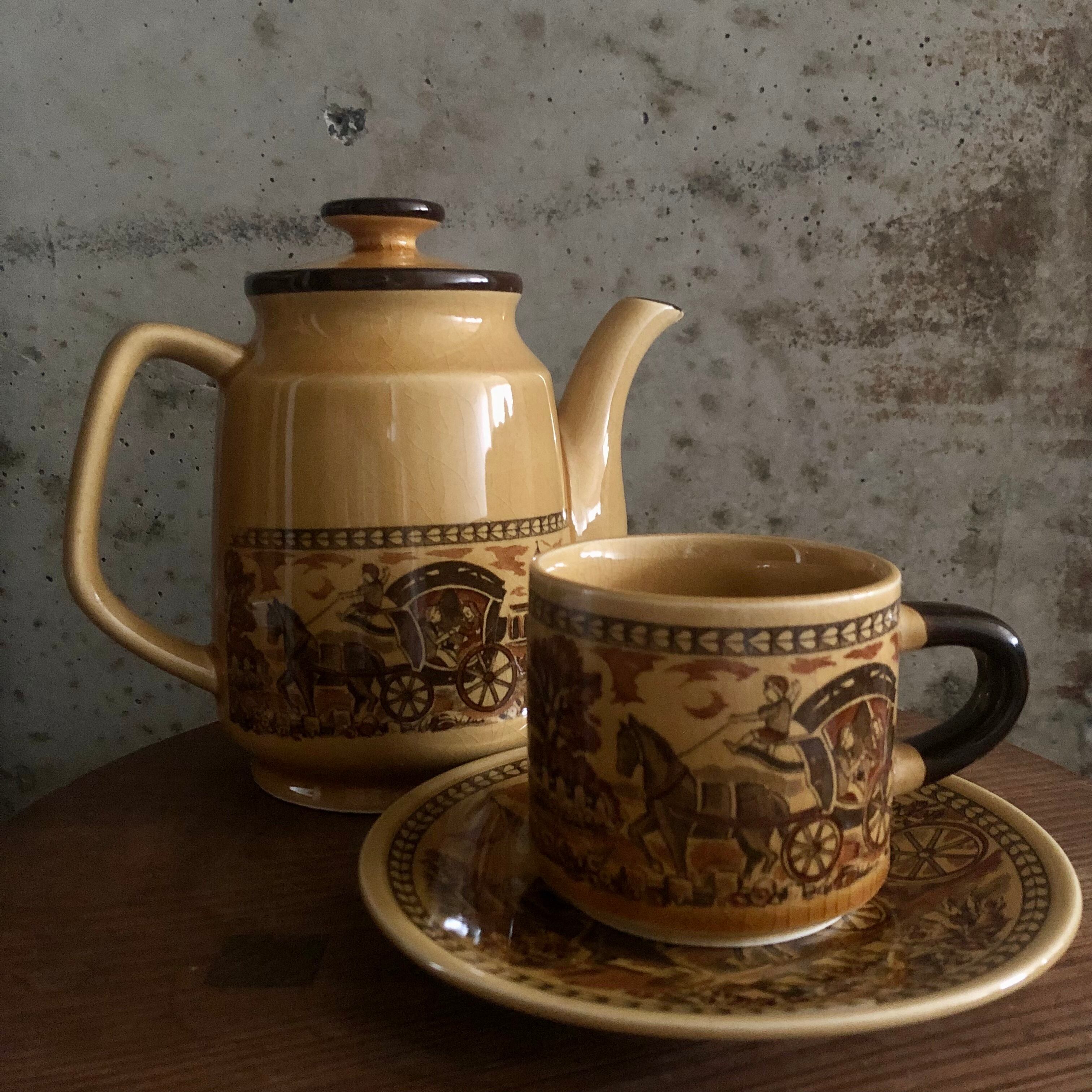 カップとソーサーには馬車が描かれており、どこか北欧ヴィンテージを感じさせる縁取り模様も素敵です。